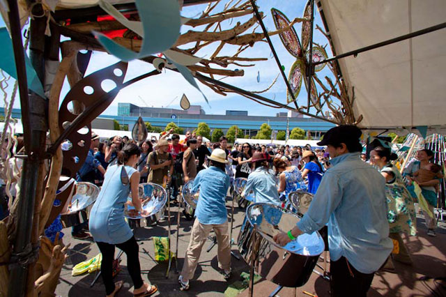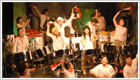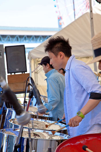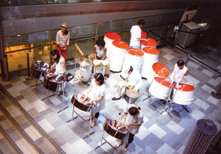 Peleのリーダー・バンドマスターの出口雅生が音楽を担当したミュージカル「天使達」で演奏。楽曲全てがSteelpanによる編曲で繰り広げられる、日本初の試み。 photo by Takanori Tsukiji